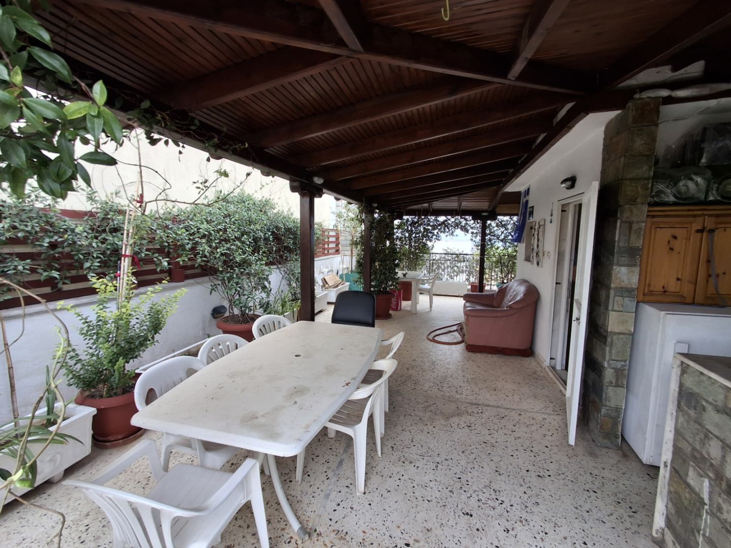 Στην αποκλειστική χρήση της μεζονέτας δίδετε και ο χώρος της διαμορφωμένης με κιόσκι και μπάρμπεκιου ταράτσας καθώς έχει πρόσβαση μόνο από τη μεζονέτα με εσωτερική σκάλα.